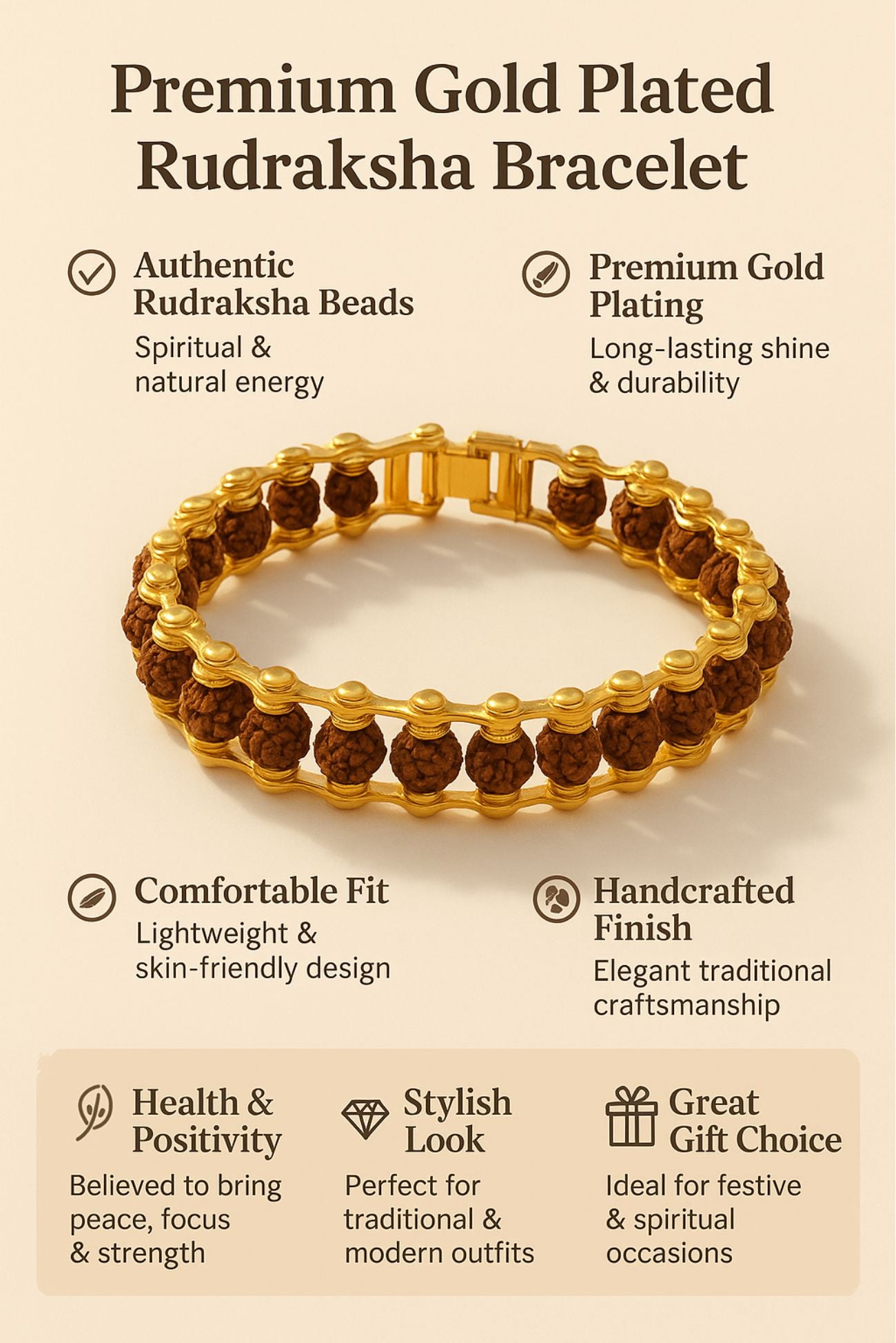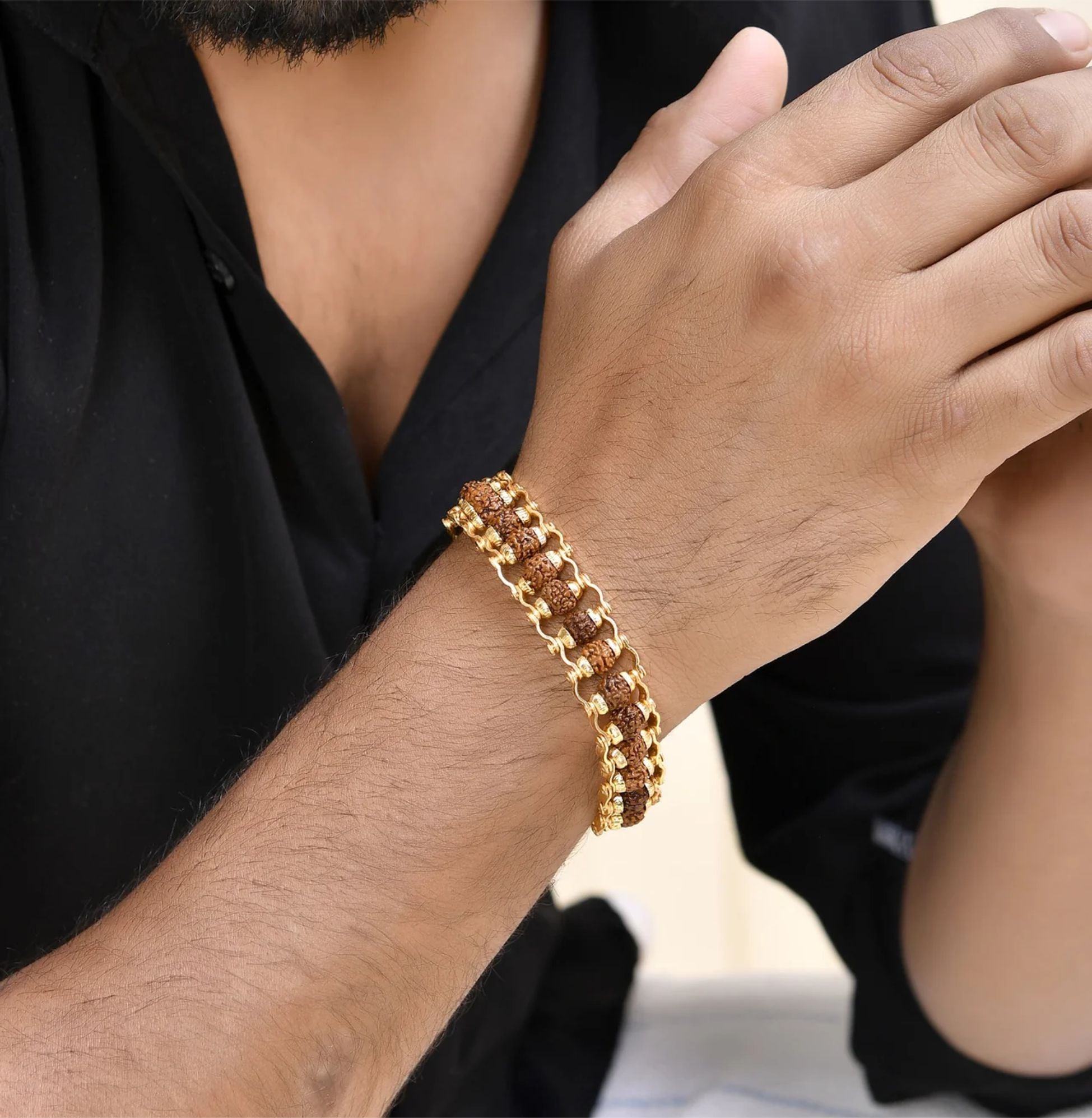 Gold Plated Rudraksha Bracelet for Men's
